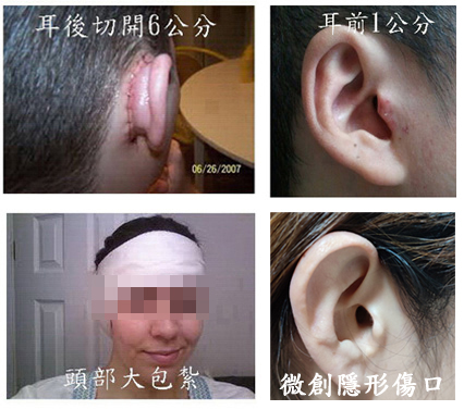 住院3天 | 耳後切開約6cm、耳朵往前翻開進入手術 | 術後耳道填塞、耳部大包紮、耳後麻木感 |